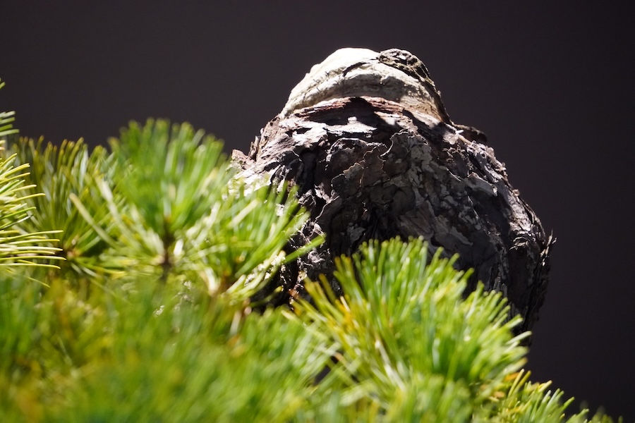 五葉松の魅力は、まずその幹肌の風格にあります。年数を重ねるごとに荒々しく割れた肌(亀甲肌)が刻まれ、深い年月を感じさせる堂々とした古木感が生まれます。また、太幹から繊細に分かれる枝流れは、盆栽特有の「懐の深さ」「品格」を演出し、樹形全体に安定感と格調をもたらします。